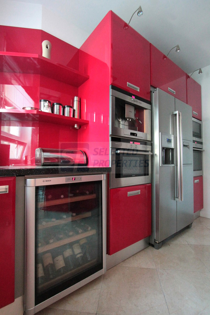 Nieruchomość składa się z przestronnego salonu, który jest częściowo połączony z kuchnią, trzech sypialni, dwóch łazienek, garderoby i hallu.