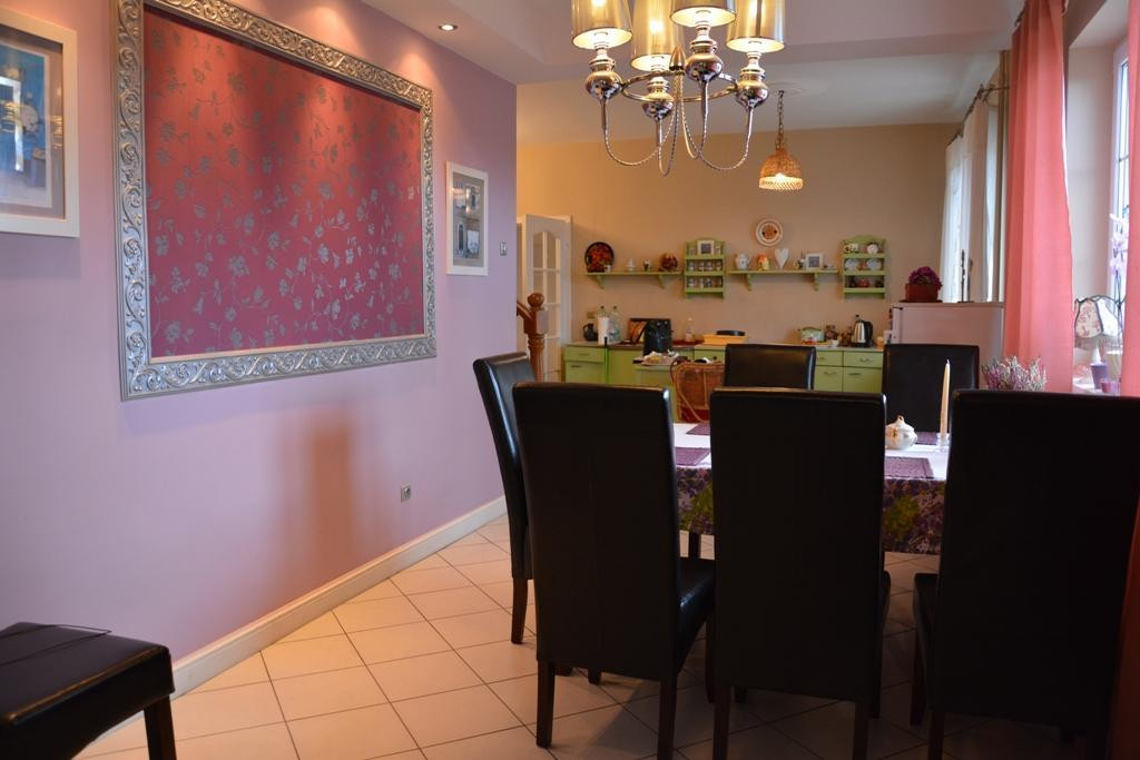 Cały parter wykończono z dbałością o detale. W kuchni, hallu, salonie i na korytarzu na podłodze wysokiej jakości kafle, ściany gładzone i malowane, liczne zdobienia. Duża sypialnia na podłodze panele, ściany gładzone, malowane, również częściowo położono ozdobną tapetę, szafa w zabudowie. Obok mniejszy pokój, pełniący rolę gabinetu. Duży pokój kąpielowy z wanną oraz oddzielna toaleta z umywalką w ładnej, nowoczesnej glazurze i terakocie. Na piętro prowadzą szerokie drewniane dębowe schody. Na piętrze duża przestrzeń typu open space z wyjściem na balkon, trzy pokoje (jeden z wyjściem na osobny balkon), garderoba oraz pokój kąpielowy. Ściany w pomieszczeniach gładzone, malowane. Pokój kąpielowy wykończony ze starannością nowoczesna glazura, terakota, wanna w zabudowie. Z hallu zejście do piwnicy oraz wyjście na duży taras (około 20m2) i ogród.