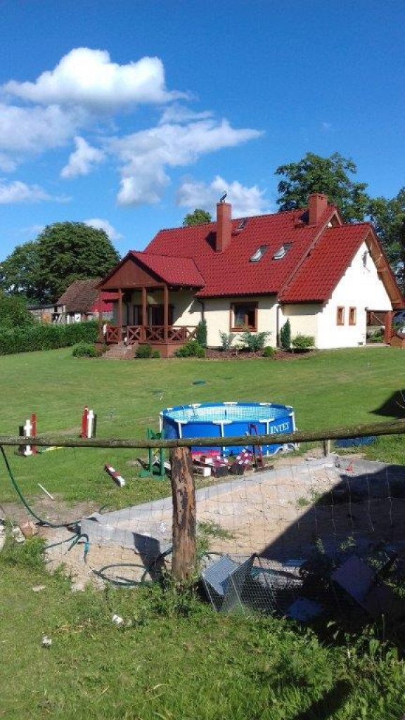 BUDYNEK MIESZKALNY Z POKOJAMI GOŚCINNYMI Powierzchnia całkowita 700 m2, w tym na parterze 350 m2 i na piętrze 350 m2, wybudowany w 1902 r. murowany, dach kryty papą. PARTER sala restauracyjna z kominkiem z płaszczem wodnym, kompletne zaplecze kuchenne bez urządzeń w tym kuchnia, zmywak, pomieszczenie kelnerskie, chłodnia, magazyn, sala przygotowania warzyw, zaplecze socjalne, łazienki dla personelu, dodatkowe drzwi gospodarcze na zewnątrz, 3 pokoje gościnne dwie łazienki i pomieszczenie na saunę. PIĘTRO w budowie 12 pokoi z wyciągniętymi instalacjami wod-kan. i c.o. W sumie może być 35 miejsc noclegowych. W pobliżu ogród warzywny. Cegły oryginalne z 1903 roku plus cegły rozbiórkowe sprzed 1940 roku. Mur polepa gliniana obłożona cegłą klinkierową oryginalną. Podłoga gres. belki stropowe. Ogrzewanie kominkowe i ogrzewanie gazowe, kotłownia z wymiennikami wody. Własny parking na 25 samochodów osobowych lub autokary.