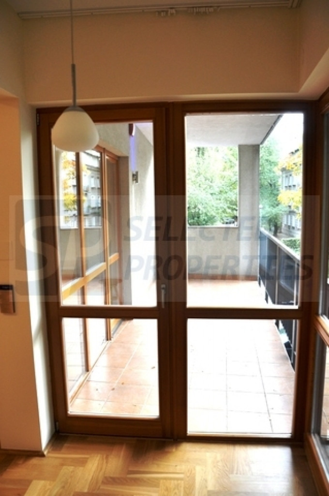 A modern apartment equipped with an intelligent installation (remote monitoring, control heat, stage lighting, sound rooms) Spacious and sunny large living room, can be easily separated from kitchen and breakfast area by sliding door. Exit to the terrace from the dining area next to the kitchen and from the living room. At the entrance to the apartment there is a comfortable storage room. Bedrooms have windows to the West and view with trees. One bathroom has a shower and another a bath, both have toilets. Very quiet neighborhood. Close proximity of Geleriia Mokotów.